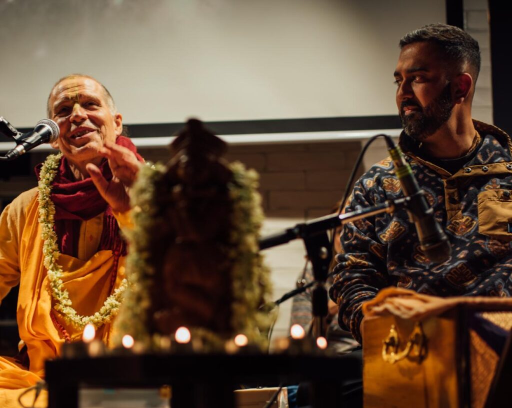 Radhika Das hosts his weekly Friday night Kirtans upstairs at OMNOM, a not-for-profit restaurant.